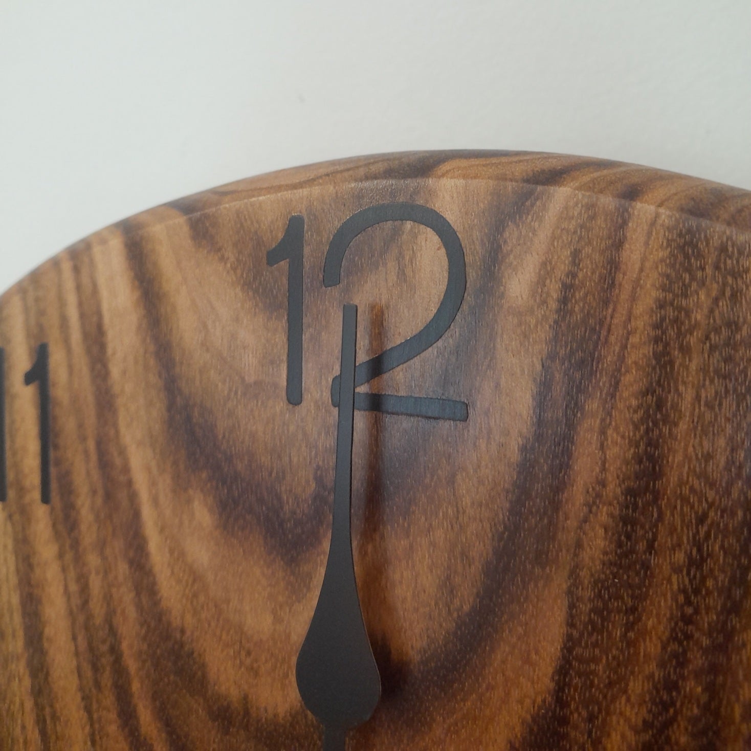 A turned, wooden, analog wall clock made by us using German-made battery-powered movement (AA). The face is sealed by three layers of oil-based varnish, protecting the German-made vinyl hours and clock face.
